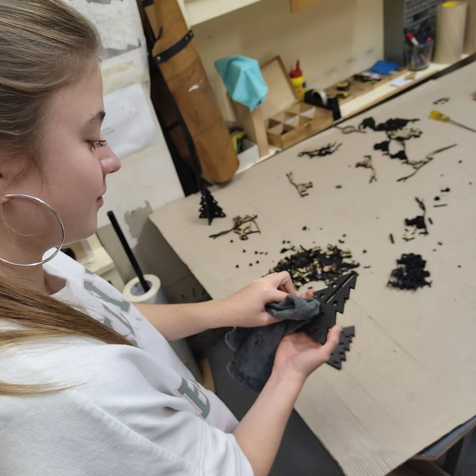 During her training, Eva worked with a laser cutter more and more, but mostly under strict supervision. She was eager to learn how to work with this independently and gain more confidence in the whole process.
